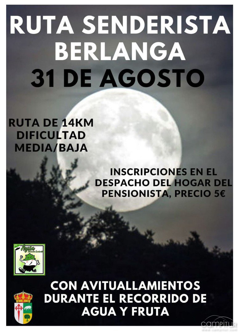 Mañana jueves, 31 de agosto, tendrá lugar la celebración de una Ruta Senderista Nocturna en Berlanga.